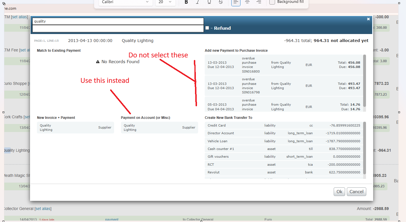 - Use the Purchases > Payments tab to enter the Supplier’s name and press Find Invoices&Payments.