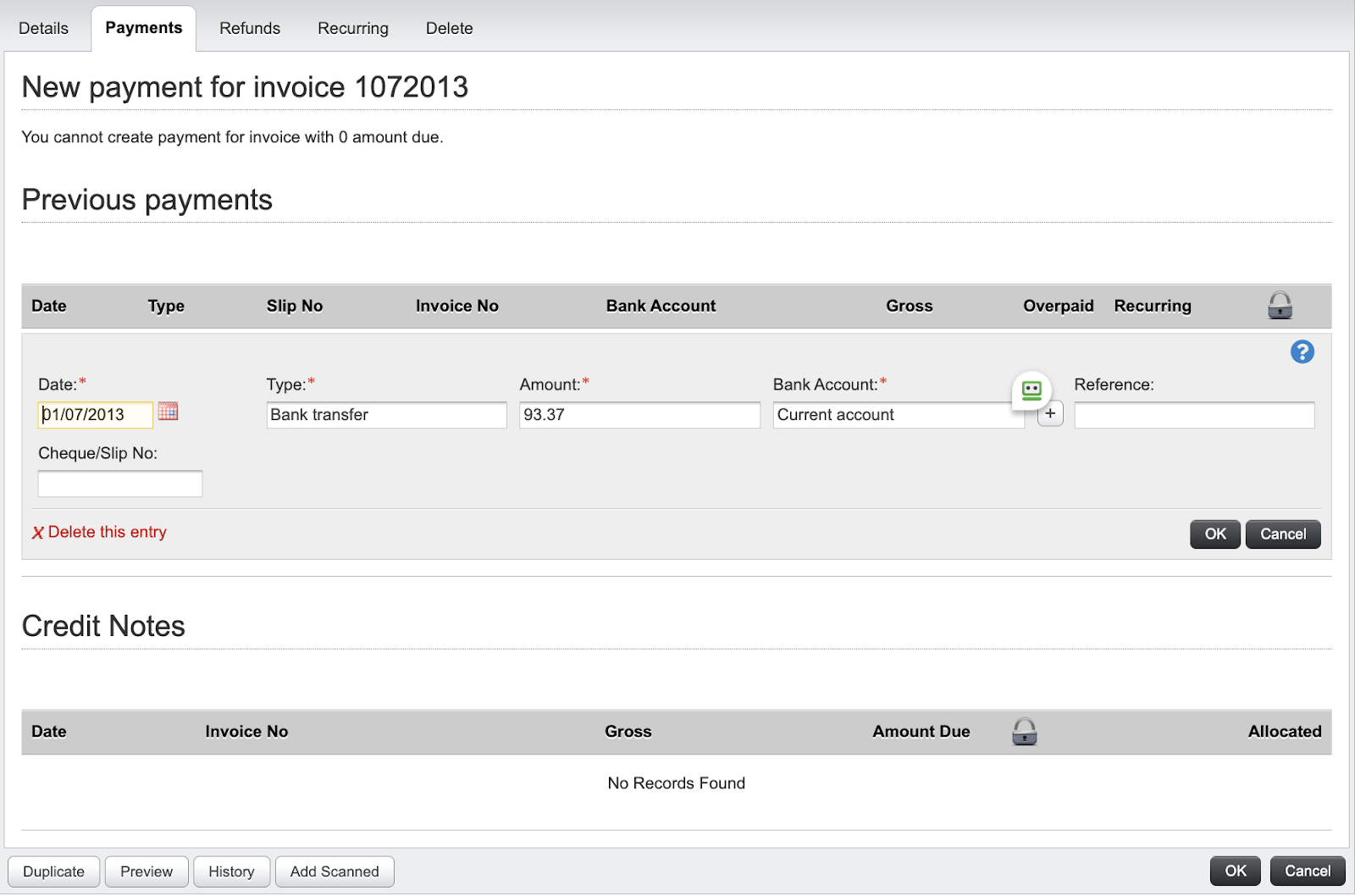 - Tick the selected box next to each invoice to which you want to allocate the payment.